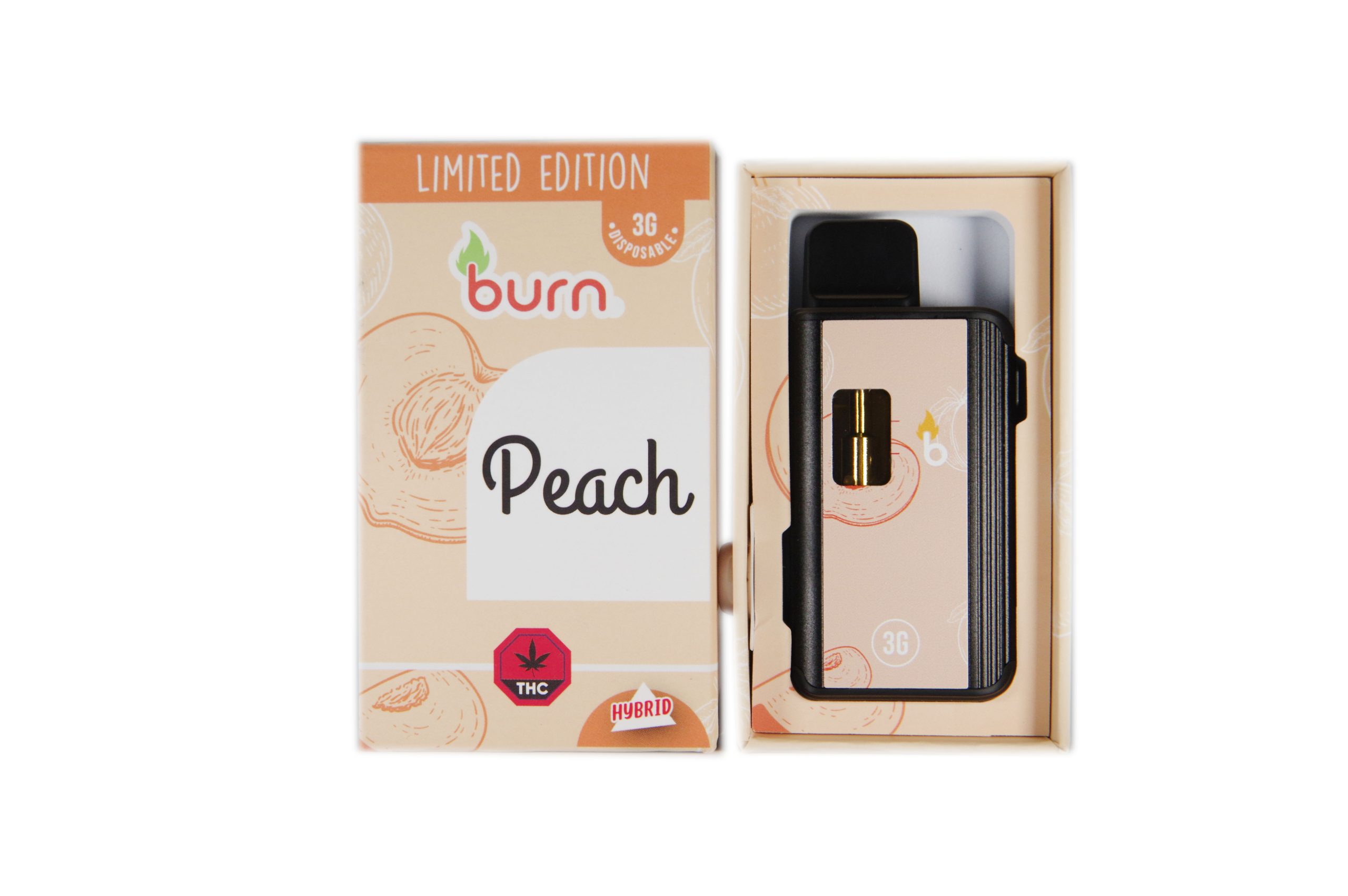 Burn 3mL Disposable Vapes – Peach THC Distillate