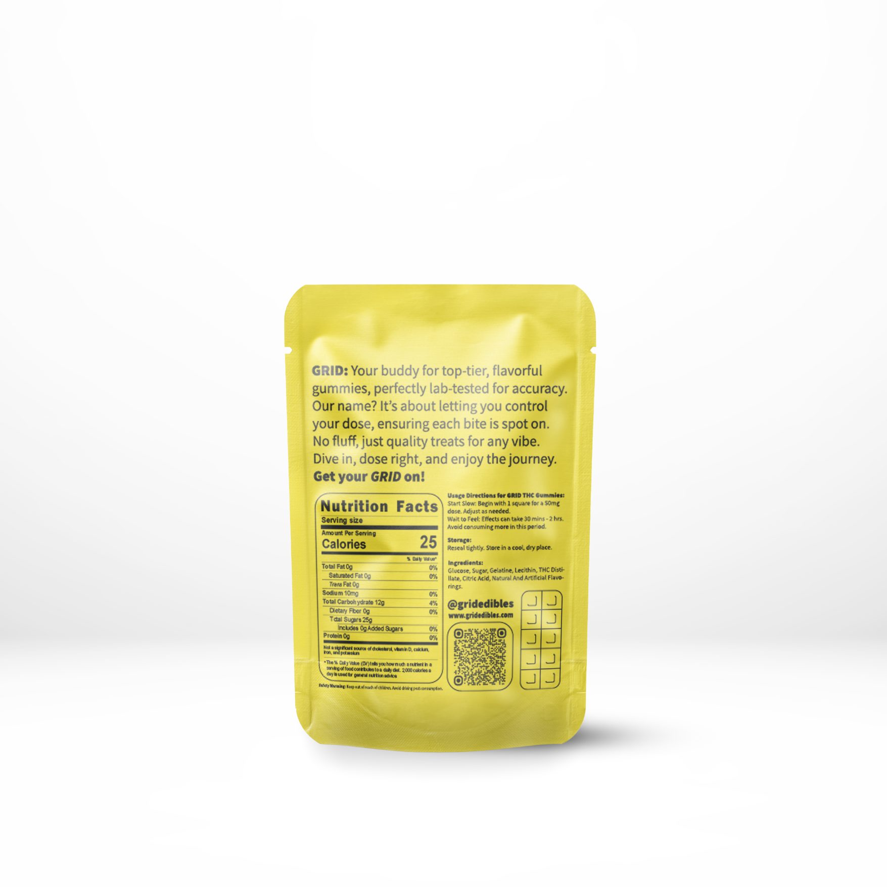 Introducing GRID our newest brand to join the Naked line up of gummies. A flavourful lineup of handmade highly dosed edibles designed to excite your taste buds and delivery a couch-locking punch. All-natural flavours made with real fruit juice. Each piece is perfectly dosed in 1 block with 10 squares that can be cut. 50MG per square x 10 squares with a total of 500MG per package. Enjoy these heavy hitters in 4 delicious flavours.