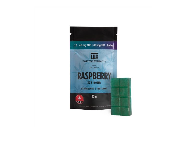 Twisted Extracts Jelly Bombs 1:1 40mg THC + 40mg CBD – Blue Raspberry (Indica)